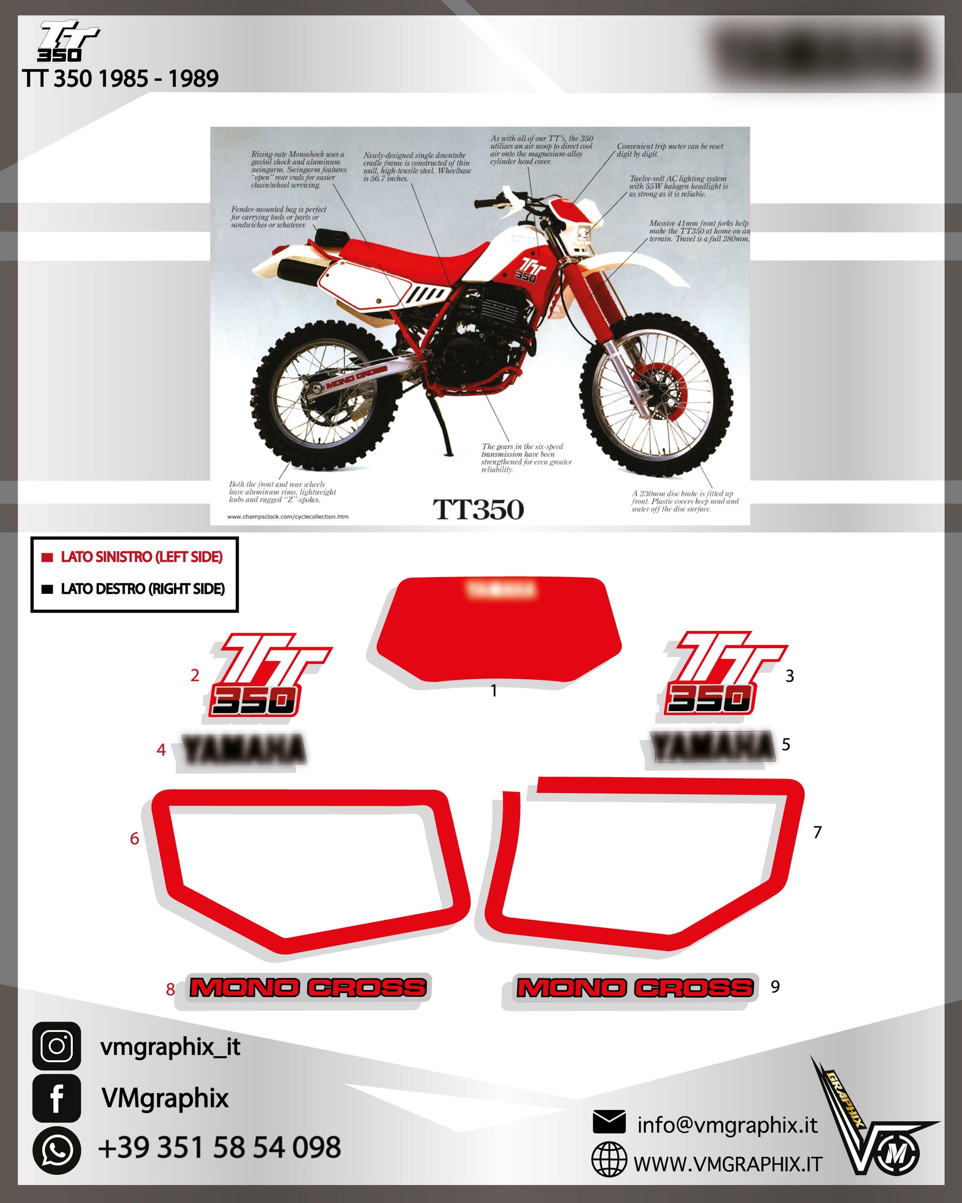 Sticker kit compatible with YAMAHA TT 350 1985 – 1989 MODEL C