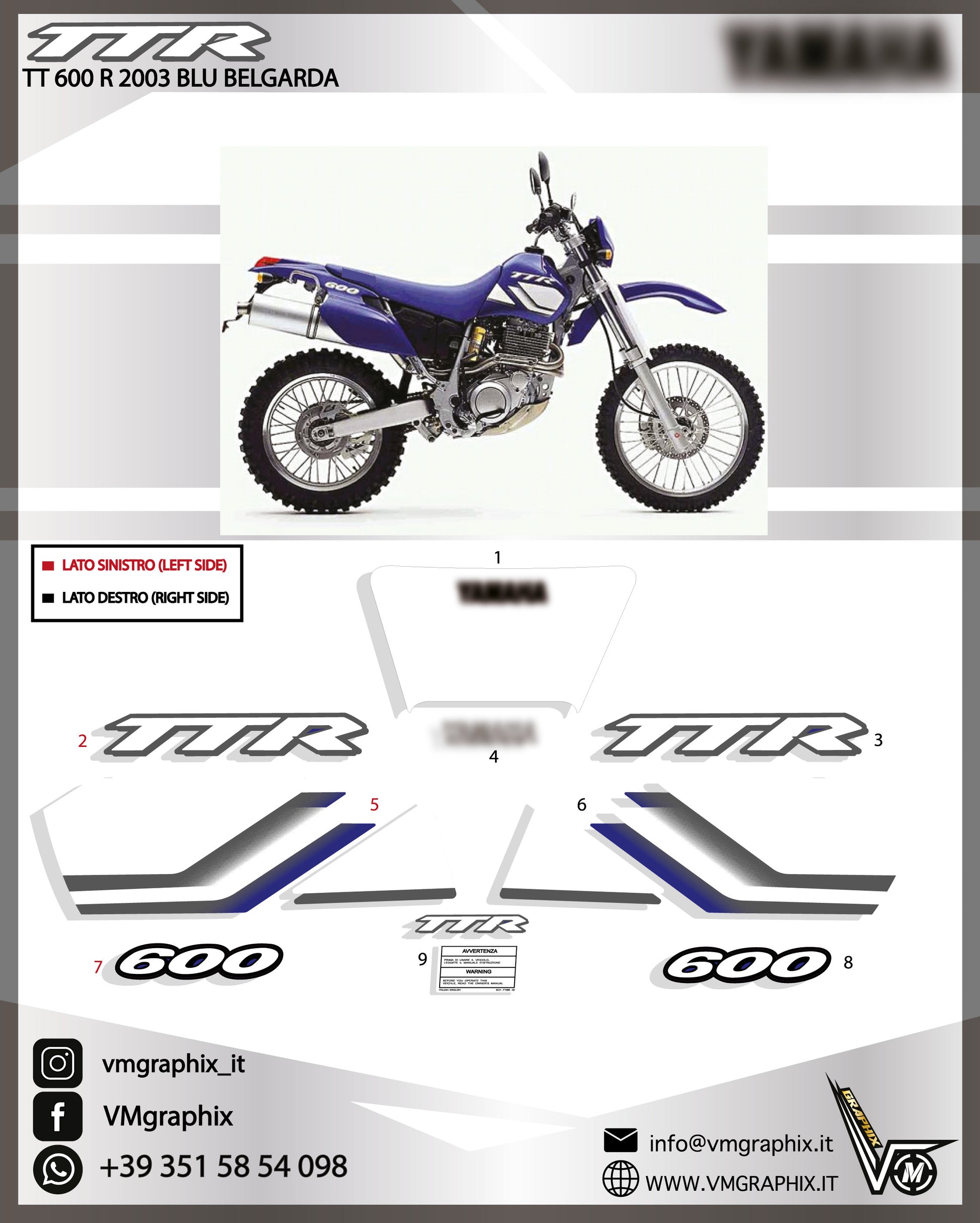 Kit d'autocollants compatible avec YAMAHA TT 600 R TTR 600 2002 - 2003 BELGARDE