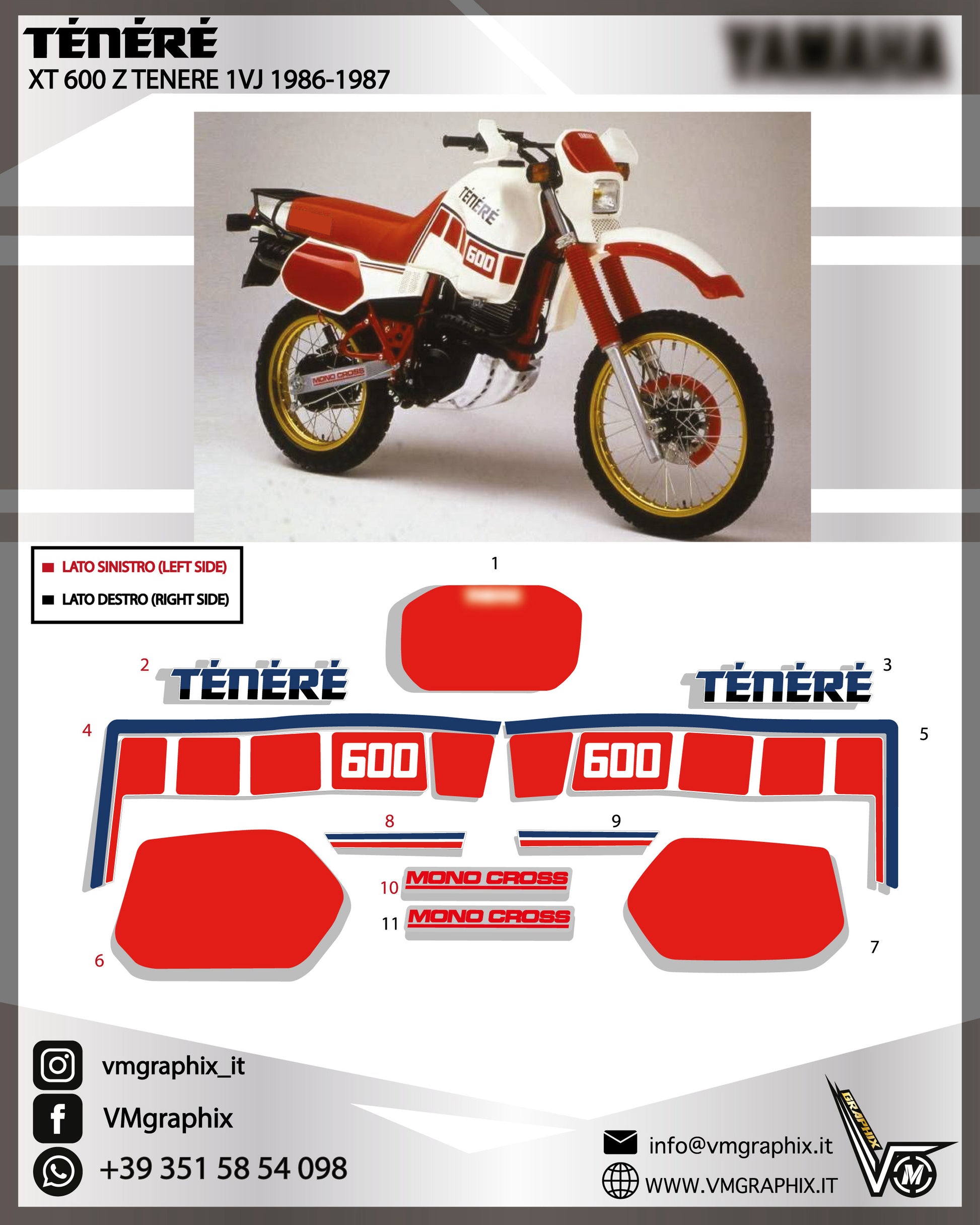 Kit d'autocollants compatible avec la moto blanche YAMAHA XT 600 Z XTZ TENERE 1VJ (1986-1987).