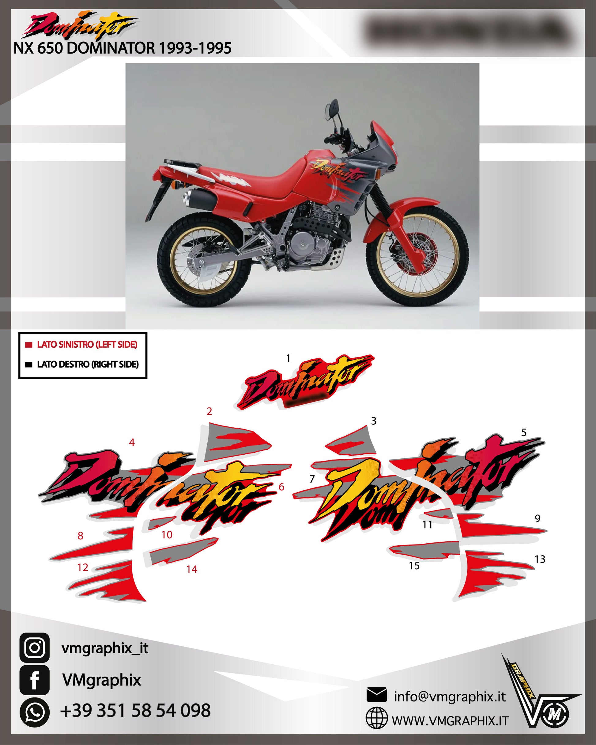 Kit di adesivi compatibili con Honda NX 650 Dominator 1993 - 1995 moto rossa - grigia