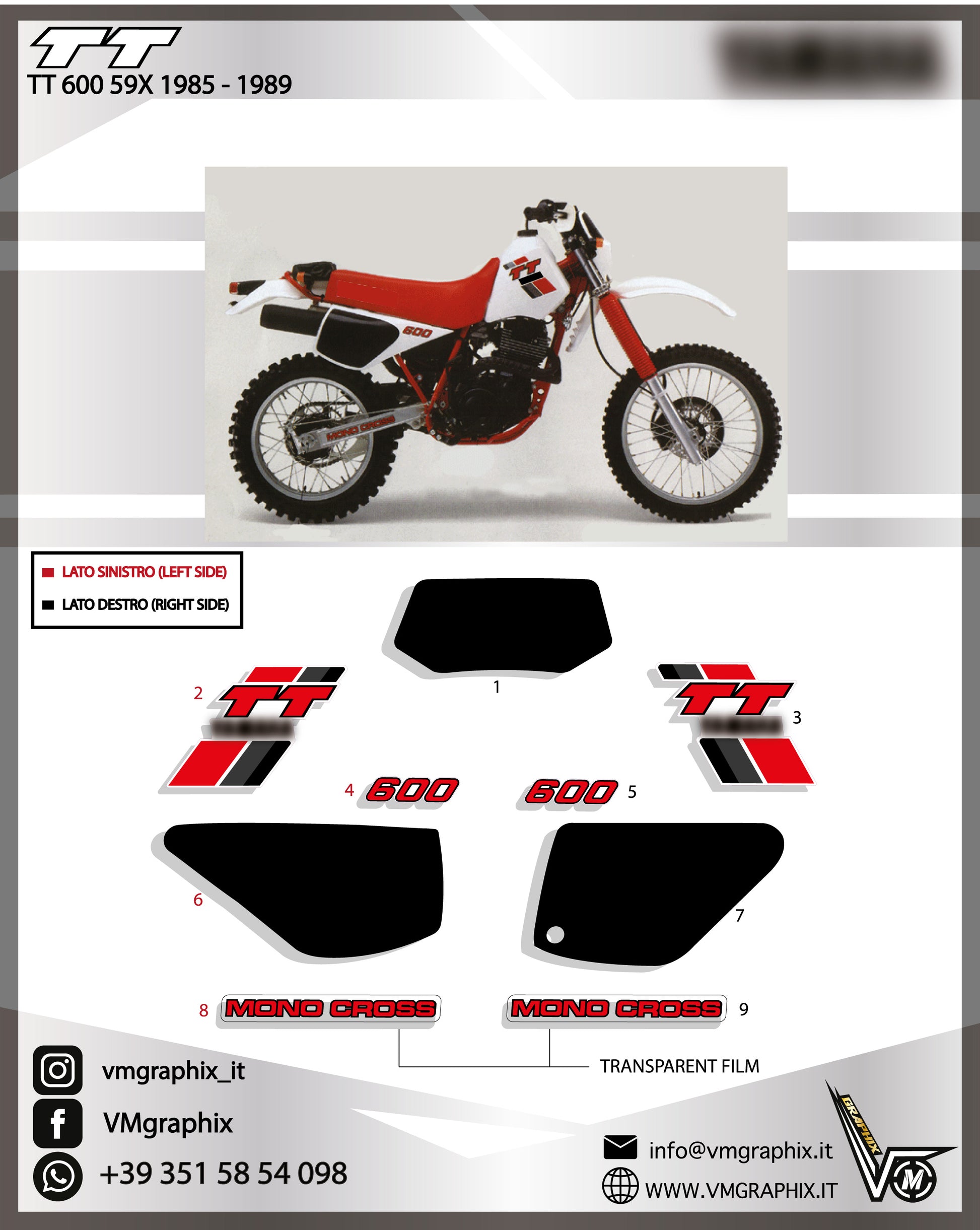 Kit di adesivi compatibili con Yamaha TT 600 59x 1985 - 1989