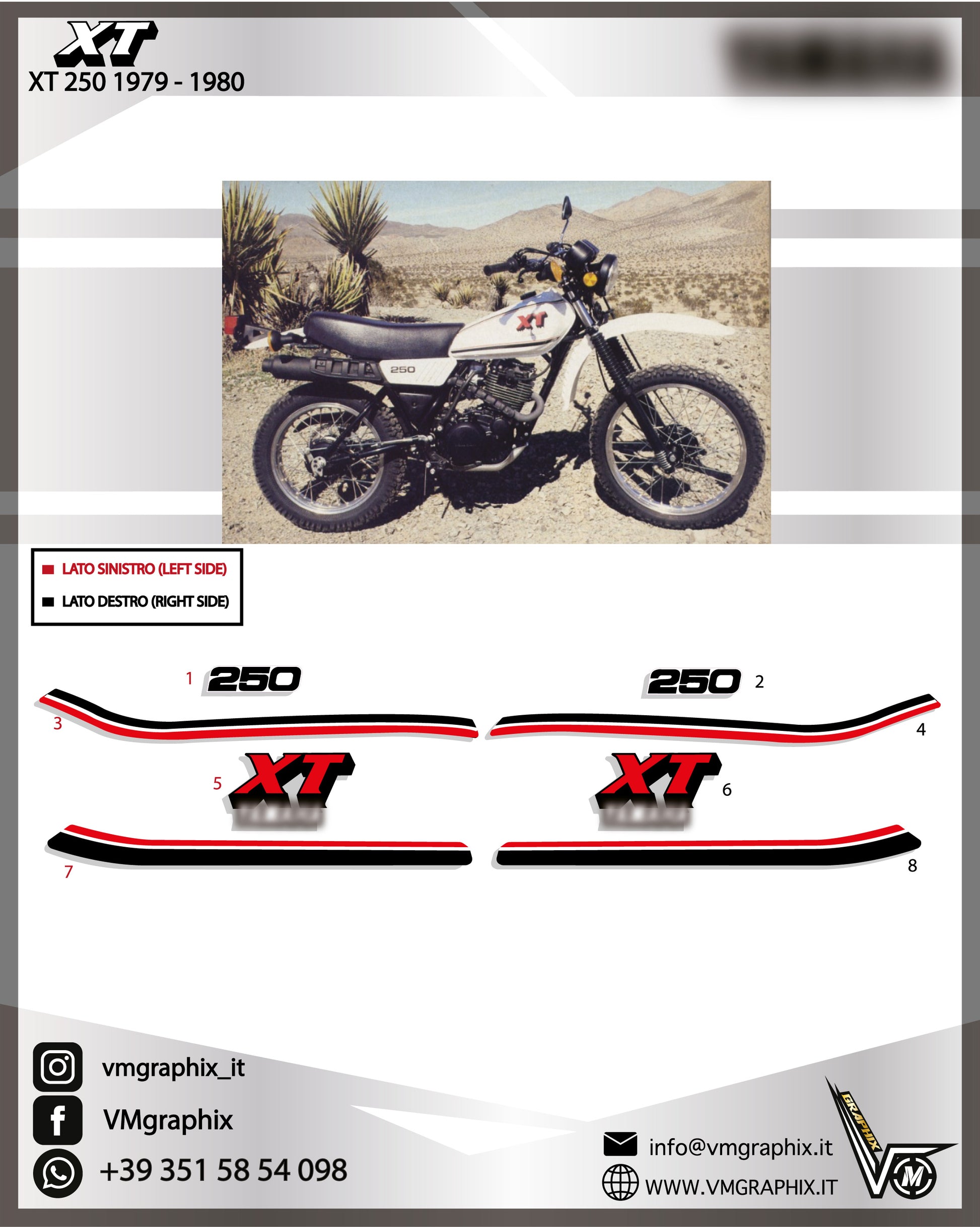 Kit di adesivi compatibili con YAMAHA XT 250 1980 moto bianca