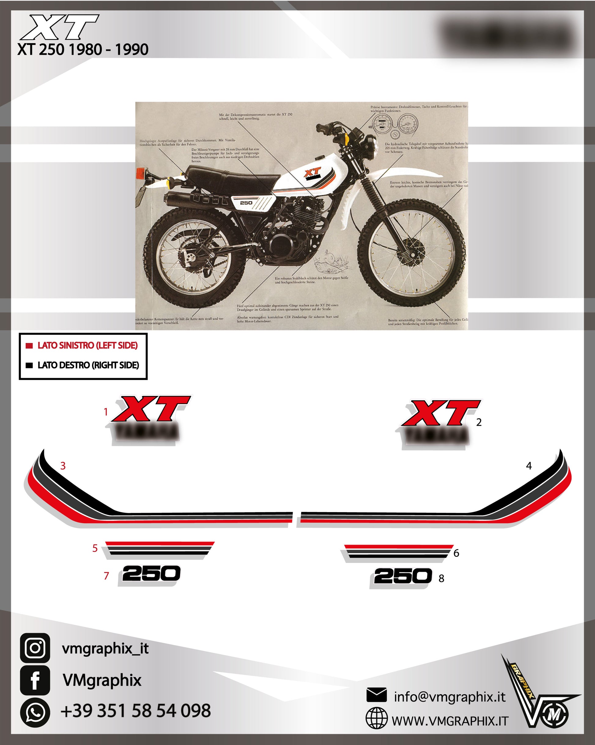 Kit di adesivi compatibili con YAMAHA XT 250 1980 - 1990 moto bianca