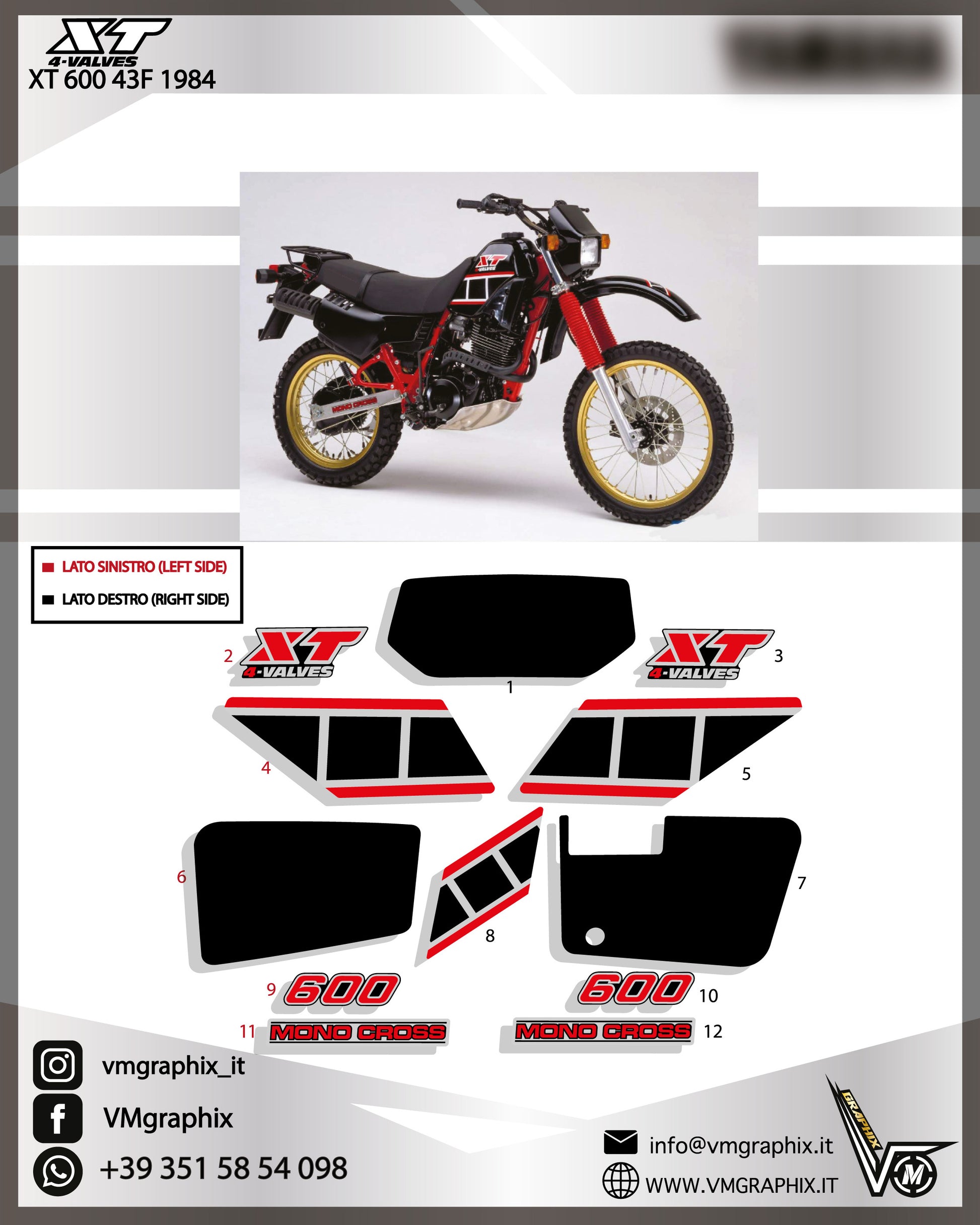 Kit di adesivi compatibili con YAMAHA XT 600 43F 43 F 1984 moto nera