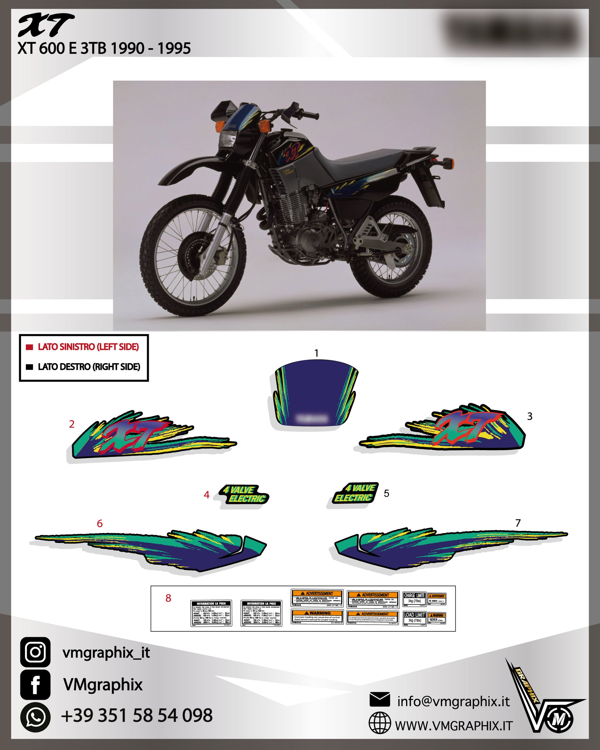 Kit di adesivi compatibili con YAMAHA XT 600 E 3TB 3 TB 1990 - 1995 moto nera - verde - gialla