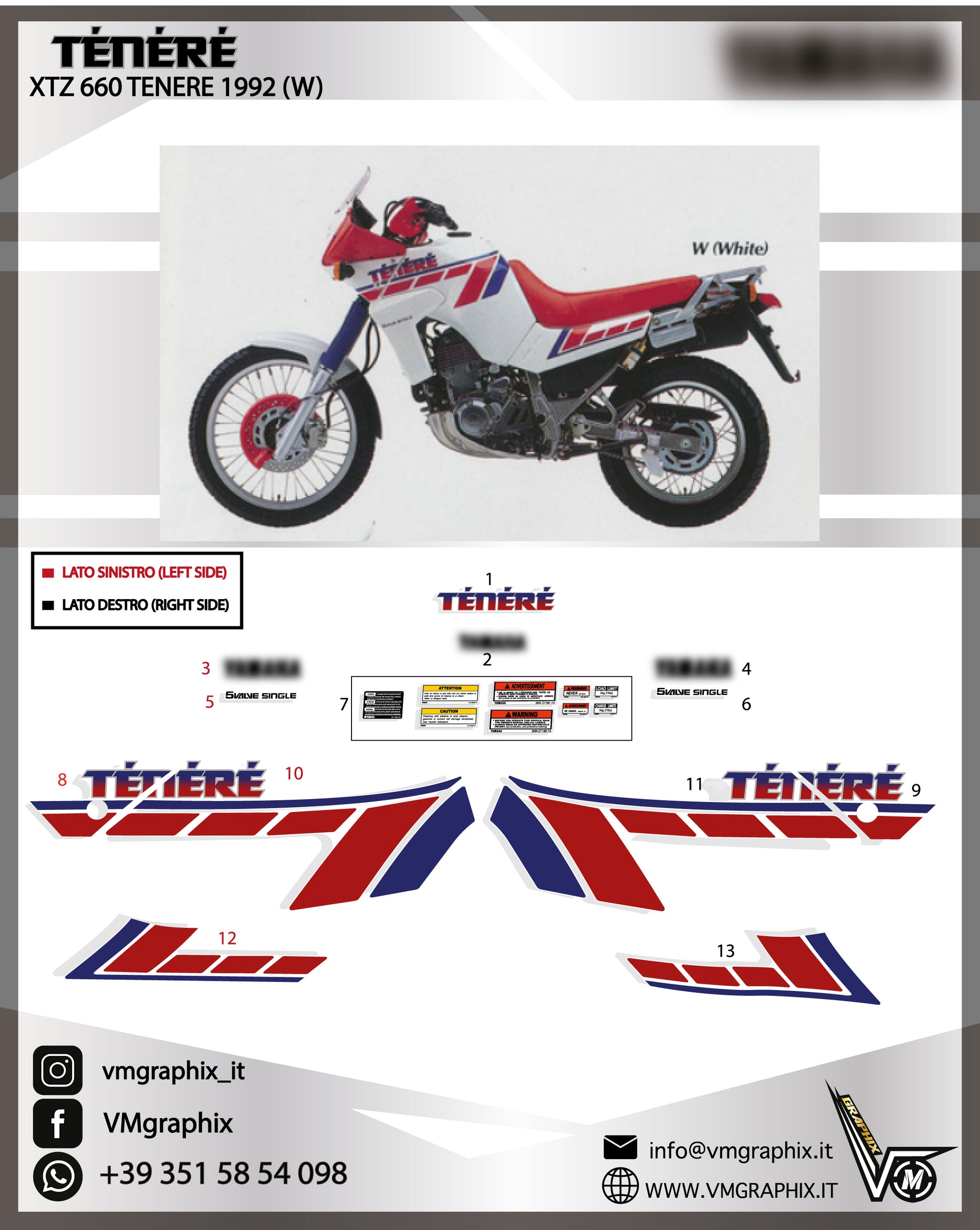 Si consiglia sempre di acquistare l’intero kit di adesivi e di non affiancare gli adesivi in oggetto ad adesivi già presenti sulla moto/datati.