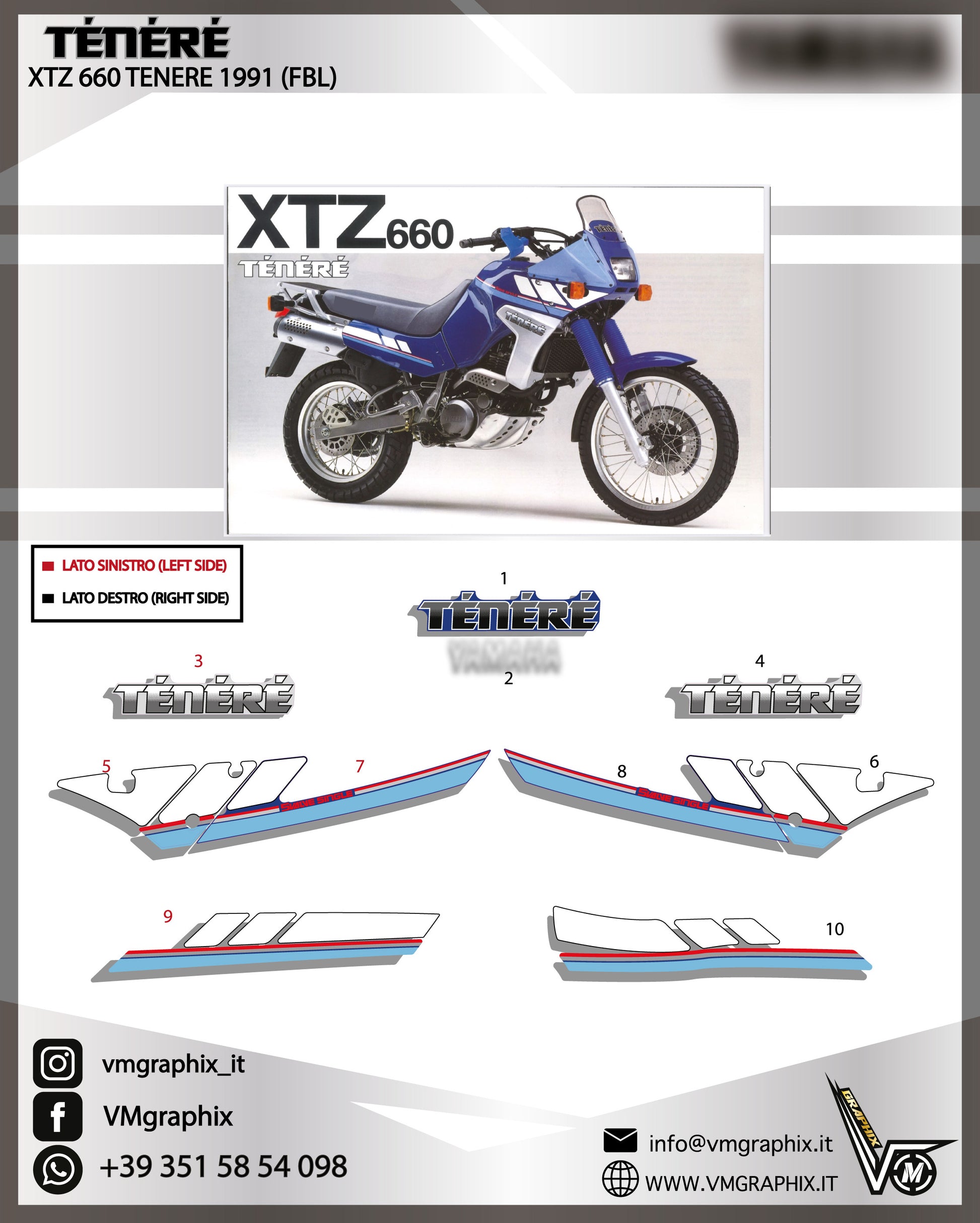 Kit di adesivi compatibili con YAMAHA XT 600 Z XTZ TENERE 3yf 1991 moto blu