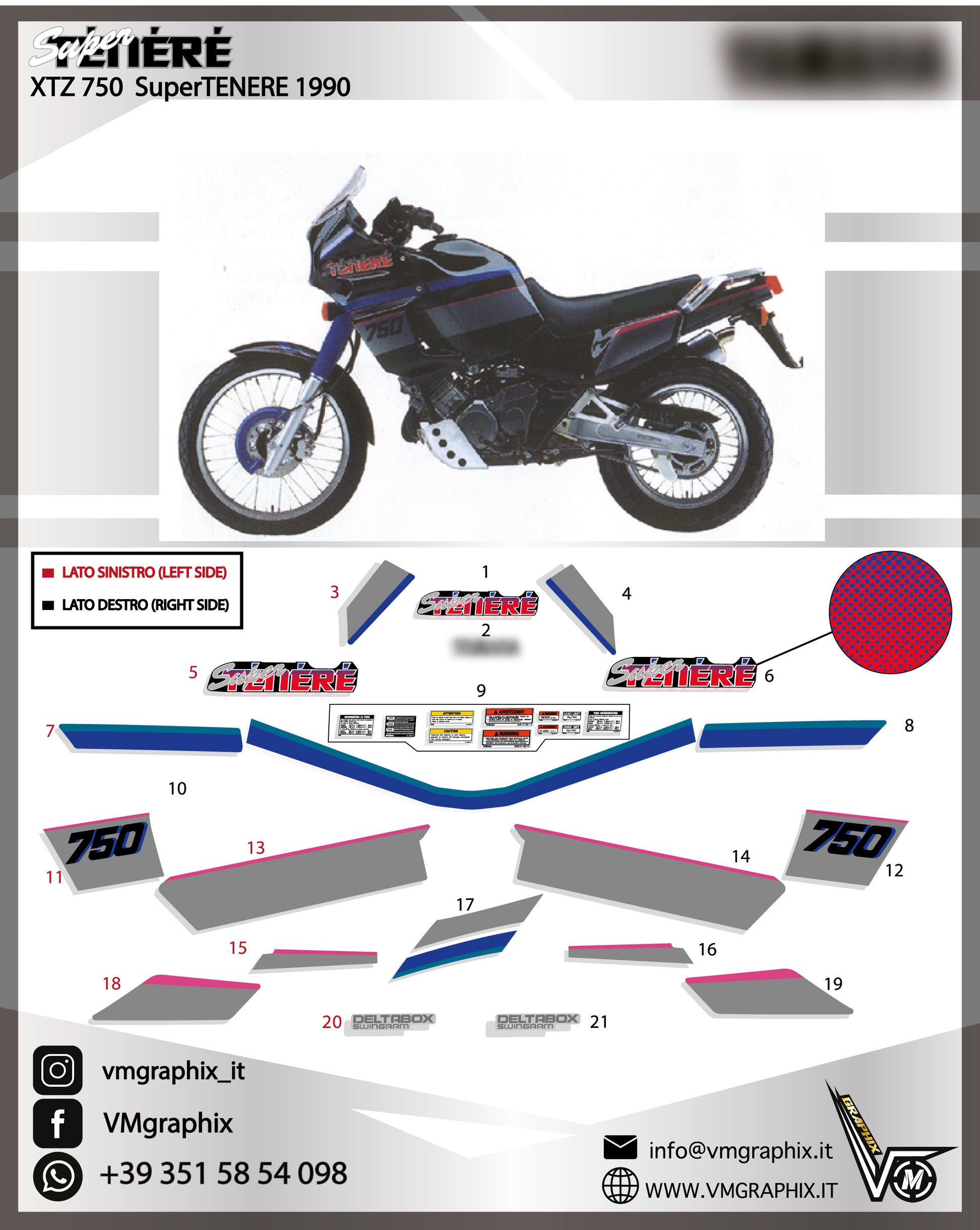 Kit di adesivi compatibili con YAMAHA XT 750 Z XTZ 750 SUPER TENERE 1990 moto nera - grigia