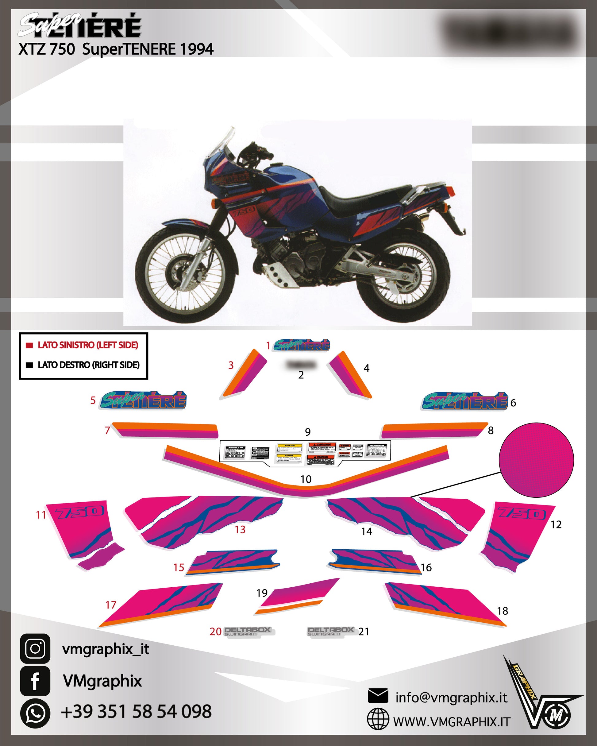 Kit di adesivi compatibili con YAMAHA XT 750 Z XTZ 750 SUPER TENERE 1994 moto blu - fucsia